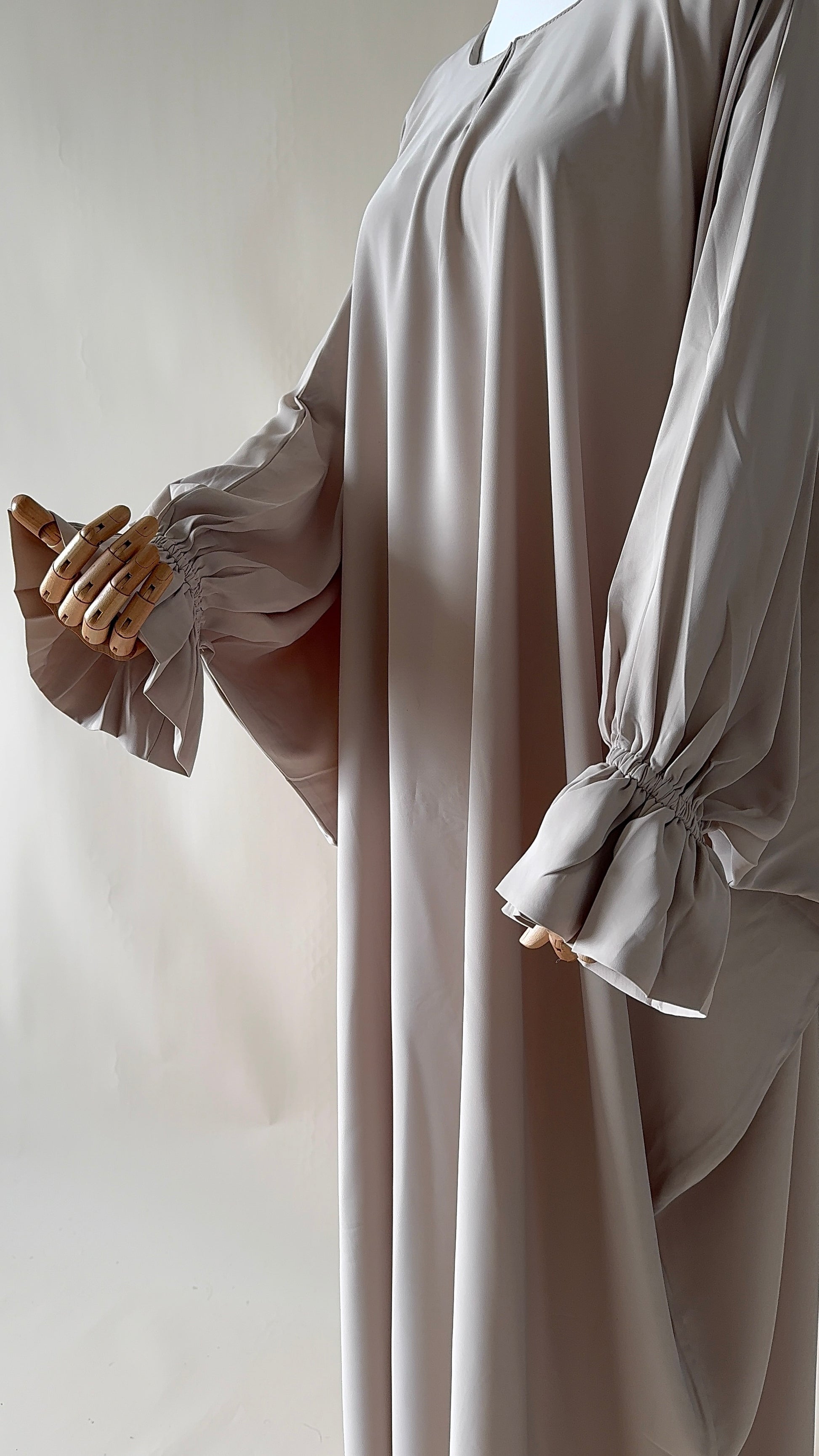 Die Abayā Farah überzeugt mit ihrem wunderschönen Farasha-Look, der für eine perfekte Bedeckung sorgt. Die eleganten Ärmel und das durchdachte Design machen sie zu einem idealen Kleidungsstück für jede Jahreszeit.