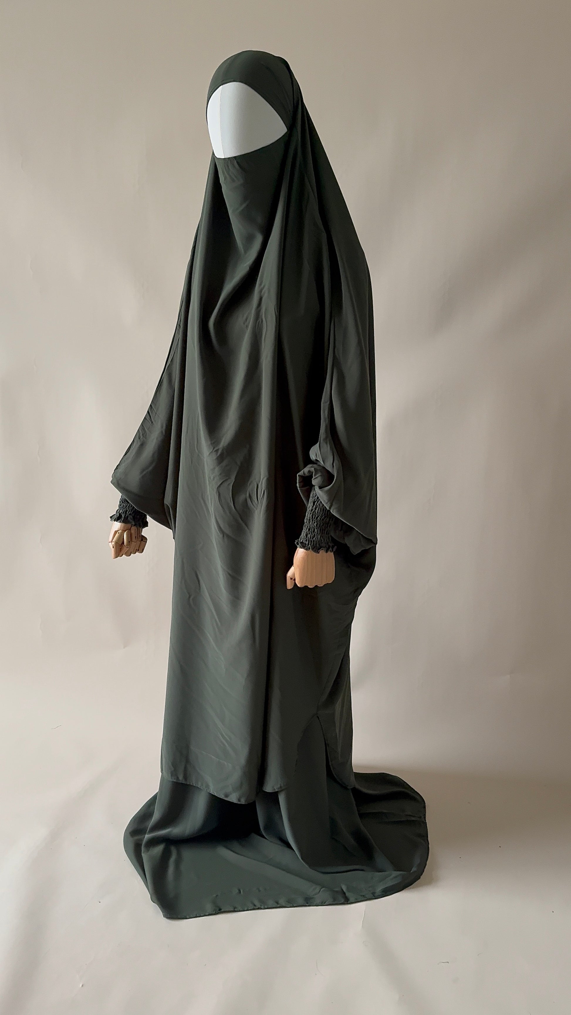 The AWRA jilbab is particularly striking thanks to its beautiful, elegantly shaped sleeves. It adapts perfectly to any head shape and ensures comfortable wear all day long.